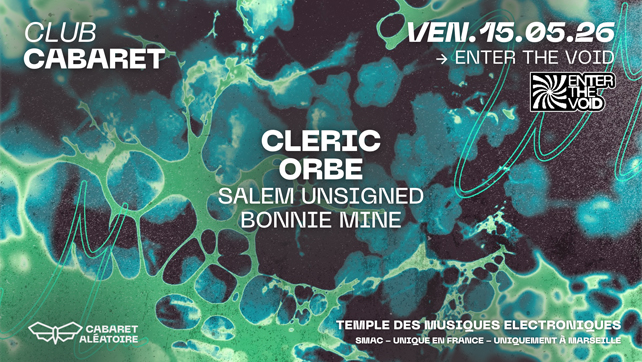 Tickets : https://shotgun.live/fr/events/15-05-club-cabaret-enter-the-void-w-cleric-orbe