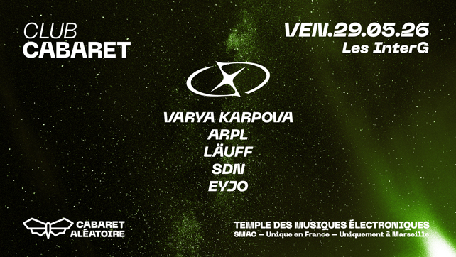 À Marseille, la scène électronique est un véritable écosystème bouillonnant : house, techno, hard, psytrance, bass, afro… les collectifs et artistes locaux façonnent une identité sonore multiple et vibrante. Pour les soutenir, le Cabaret Aléatoire imagine depuis plus de dix ans un format de soirées pensé pour eux : les Clubs Cabaret.